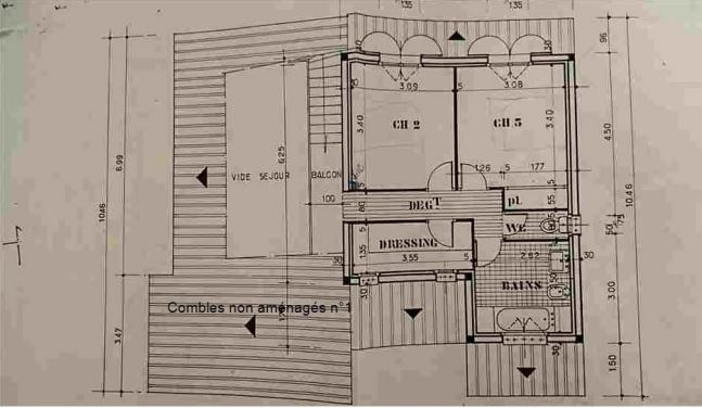 À l'étage, un dégagement dessert deux belles chambres, une salle de bain, un dressing et, une troisième pièce faisant office de chambre dans les combles aménagées.